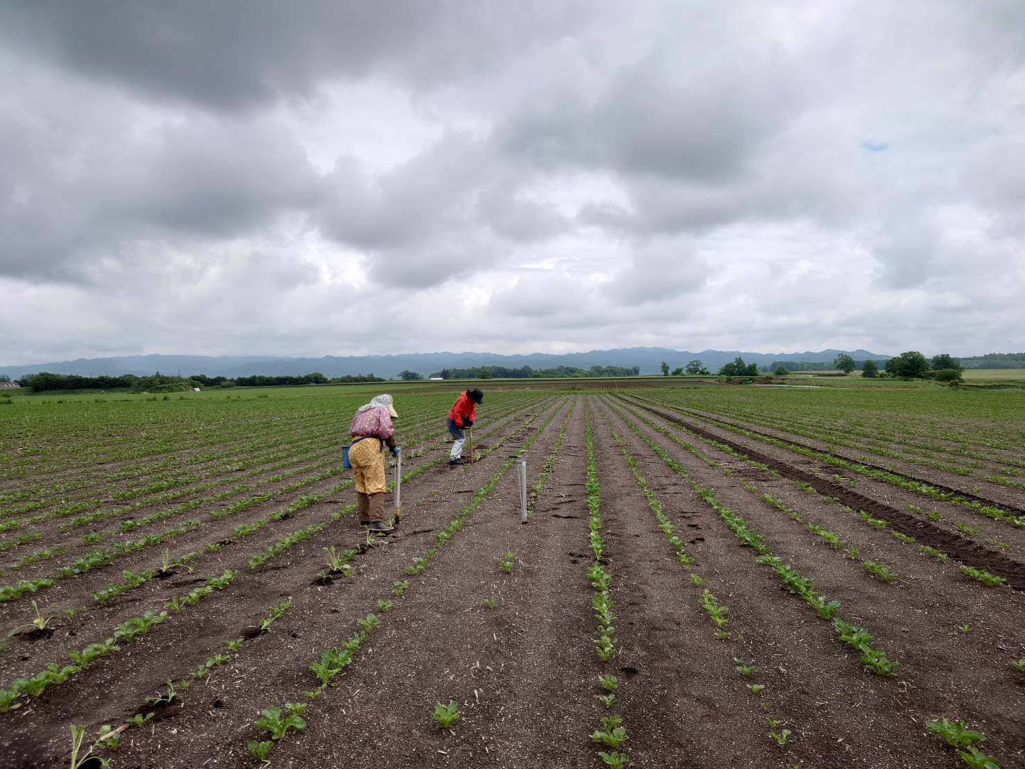 ビートは、まだ発芽前だったのですが、風当たりが強い畑は、土ごと種が飛ばされ…所々種が無くなる状況。